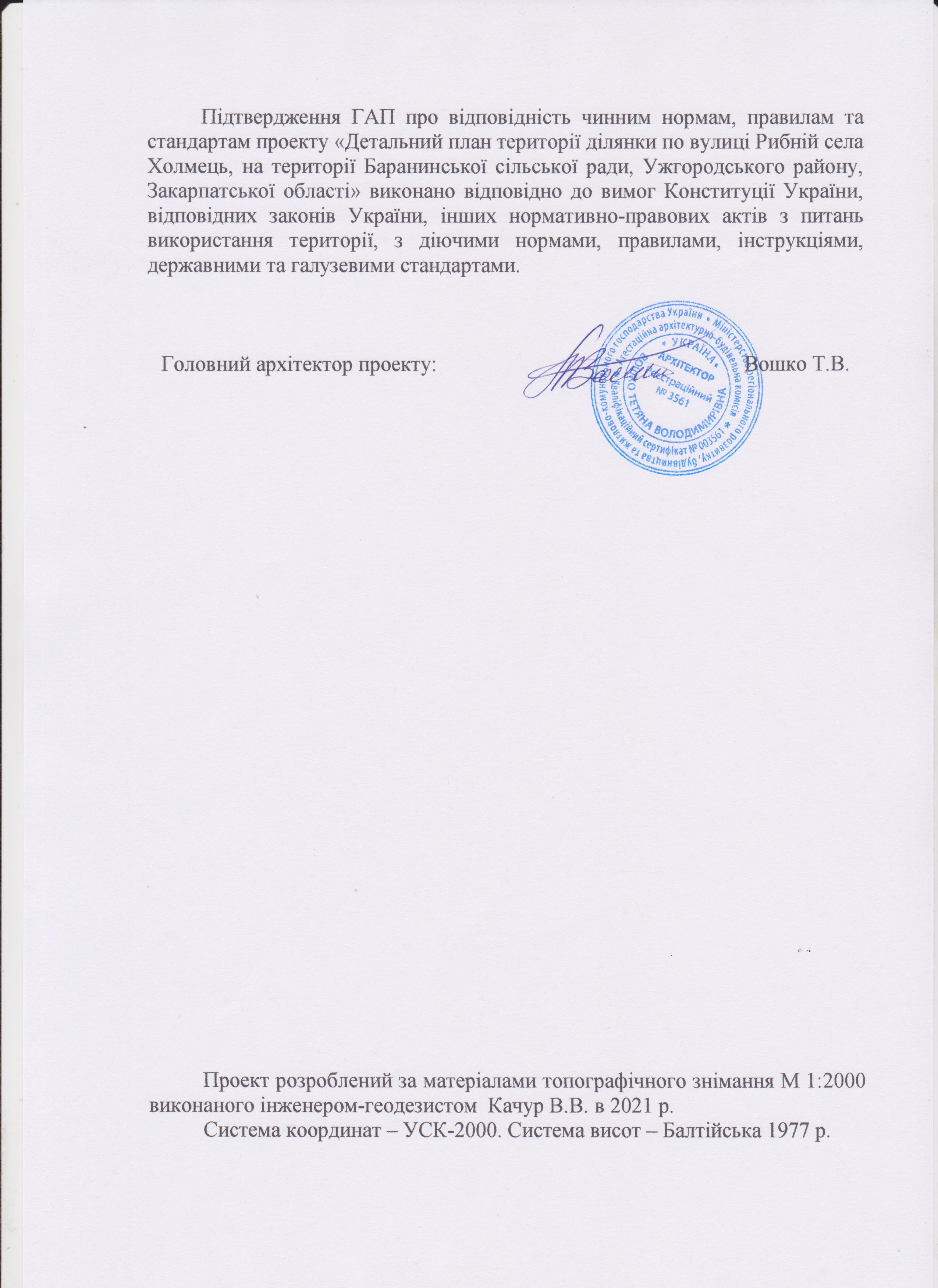 Затверджений проект Ужгородською райдержадміністрації являється основним документом, що визначає подальший розвиток території. Даний проект являється обов'язковим для всіх організацій, що здійснюють забудову на даній території і основою для вирішення всіх питань пов'язаних із використанням території в межах проекту. В затверджений проект при відповідному обгрунтуванні можуть бути внесені зміни автором проекту, який розробив проект, та з дозволу органу, який затвердив його.